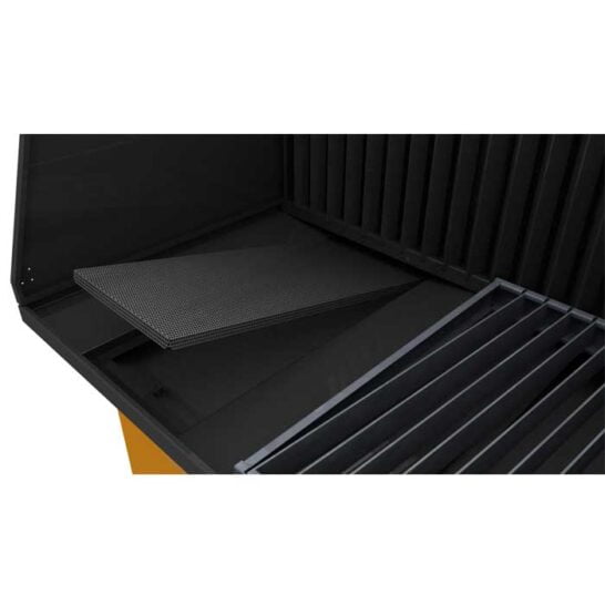 - De geïntegreerde vonkenvanger voorkomt dat vonken de filterpatronen bereiken. De vonkenvanger wordt onder het werkoppervlak van de afzuigtafel geplaatst, zodat de werkplek veilig is.