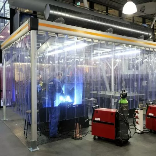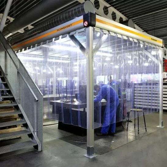 FlexHood is een modulaire afzuigkap speciaal ontworpen om een lasrobot of laswerkbank af te schermen.