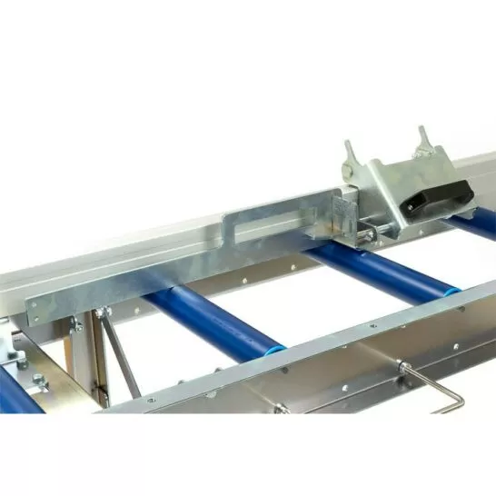 - Het aanslagpunt voor het te bewerken product wordt dan 500 mm verplaatst waardoor het mogelijk is om tussen de klembekken van een zaagmachine te kunnen afkorten op de gewenste lengte.