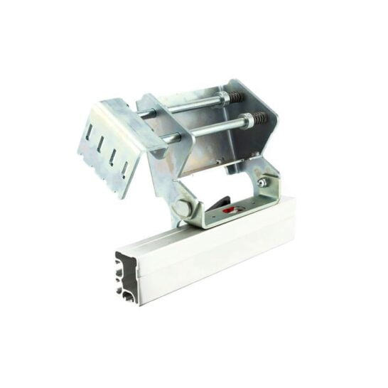 Het benodigde aluminium geleidenprofiel waar de deze aanslag op gemonteerd wordt is voorzien van een verzonken gleuf waarin het 13 mm brede zelfklevende meetlint met uitlezing in mm wordt aangebracht. Het aluminium profiel is geanodiseerd en kan rechtstreeks of door profielsteunen op een Posi-flex rollenbaan of op een bestaande rollenbaan gemonteerd worden.