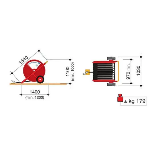 - Automatische slangopwikkeling d.m.v. watercilinder (aanbevolen druk 3-3,5 bar)