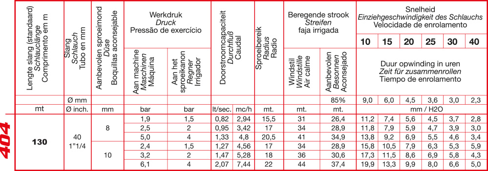 - De sproeier bestrijkt een diameter van 31 tot 44 meter afhankelijk van de nozzle, de waterdruk en de weersomstandigheden (windkracht)