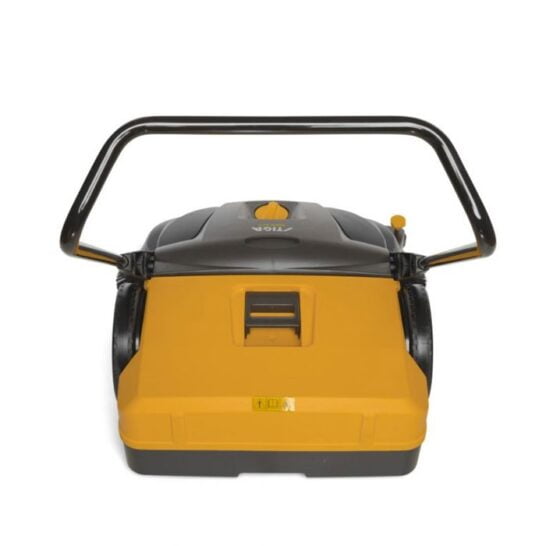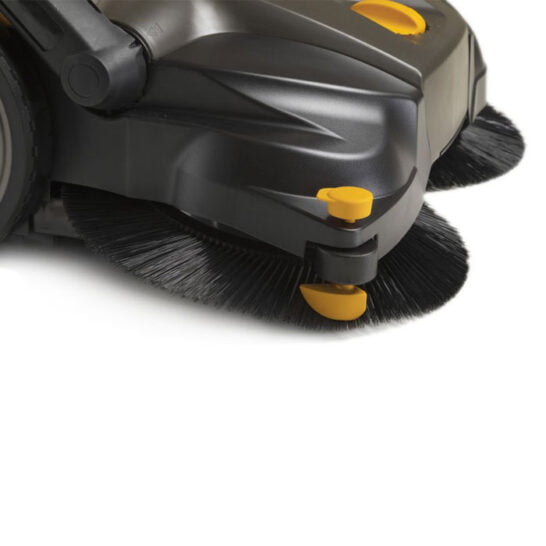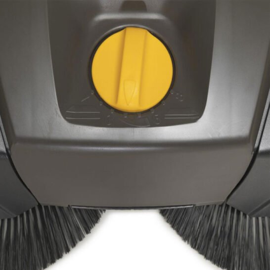 - Met een veegvermogen tot 3000 m²/u dankzij de twee ronde borstels met een diameter van 41 cm, een roterende borstel van 46 cm lang en een opvangbak van 50 L