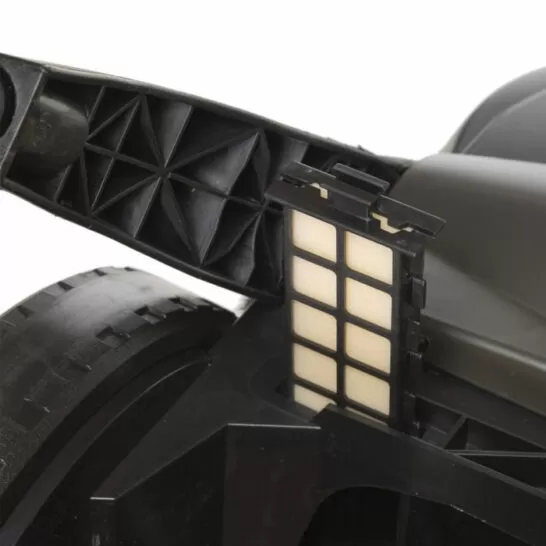 - Met een veegvermogen tot 3000 m²/u dankzij de twee ronde borstels met een diameter van 41 cm, een roterende borstel van 46 cm lang en een opvangbak van 50 L