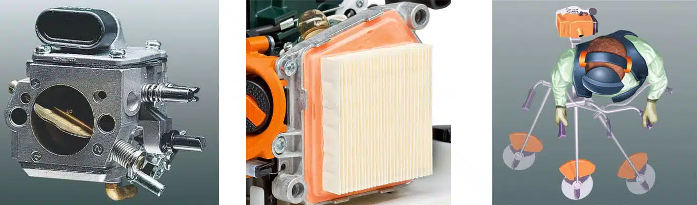 De STIHL compensator, een regeleenheid van de carburateur, zorgt ervoor dat bij vervuiling van de luchtfilter het mengsel niet te rijk kan worden. Het vermogen blijft hierdoor over een langere periode constant. De filter dient eerst gereinigd te worden wanneer het bovenvlak voor 80% vervuild is. Hierdoor kan men zeer lang zonder onderbreking blijven werken.