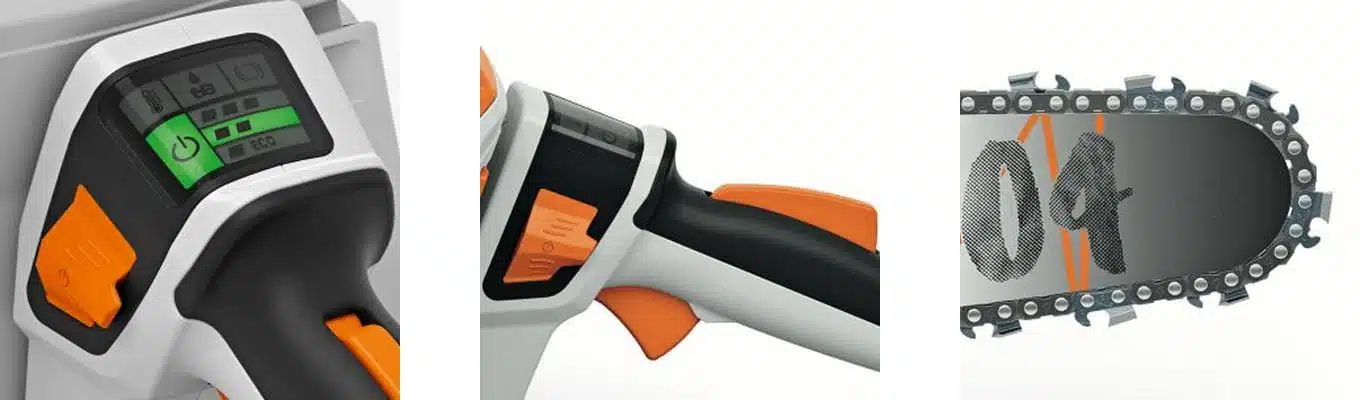 Gebruikers die actief zijn in het landschapsonderhoud, de professionele bosbouw en gemeentewerkers kunnen de STIHL MSA 300 accukettingzaag gebruiken om kleine en middelgrote bomen te vellen, van hun takken te ontdoen en te verzagen. Om zo efficiënt mogelijk te werken zijn er drie bedrijfsmodi (eco, vellen, snoeien), zodat je je kettingzaag perfect kan instellen voor verschillende toepassingen.