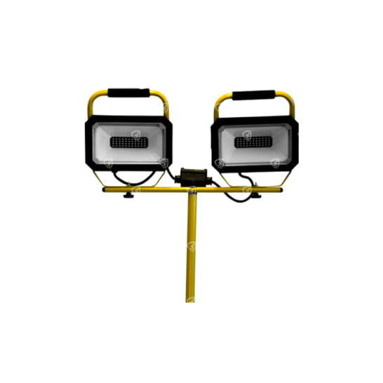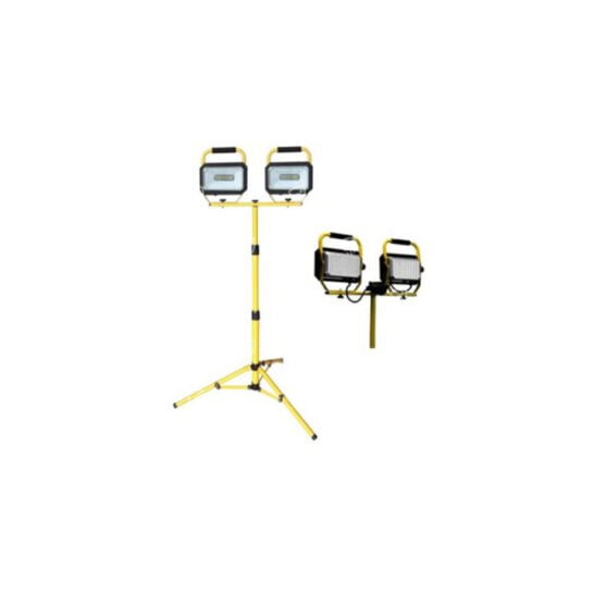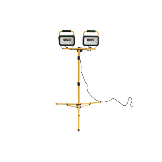 Complete set van 2 LED bouwlampen incl. statief. Elke lamp heeft 23W SMD LED’s, samen goed voor een lichtopbrengst van 4000 lumen. Het statief heeft 3 poten en wordt geleverd met opzetstuk waar beide lampen op bevestigd kunnen worden. Omdat beide lampen met elkaar verbonden zijn is er slechts 1 stopcontact nodig voor beide lampen. Uitgeklapt heeft het statief een hoogte van ca. 1,5 meter. Ingeklapt is de driepoot zeer compact en makkelijk mee te nemen. Beide lampen zijn voorzien van een beugel met softgrip om de lampen in gewenste positie af te stellen. De lampen zijn met IP65 geschikt voor binnen en buiten. Voordeel van 2 lampen is dat er een groter oppervlak te verlichten is, daarom is deze set ideaal voor stukadoors, metselaars, tegelaars enz. Een zeer mooie verlichtingsset die zuinig omgaat met energie!