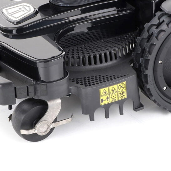 • De robot beschikt over een ultramoderne scharnierende chassis-constructie, het gedeelte met de voorwielen & het maaidek beweegt onafhankelijk van het achterste gedeelte met de aandrijfwielen zodat de robot ook op oneffen terrein uitstekende maaiprestaties neerzet door het maaiblad zoveel mogelijk waterpas te houden.