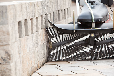 • De Borstel wordt vanuit het midden aangedreven. Voordeel: zo kun je zonder zijborstels en vanuit iedere hoek langs een muur vegen. De borsteldruk is daarbij traploos instelbaar, eveneens laat de veegrichting zich gemakkelijk in vijf standen verstellen. De ergonomische stuurboom kun je gemakkelijk aan jouw lichaamsgrootte aanpassen.
