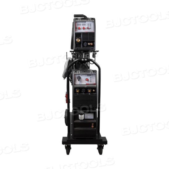 - De machine wordt standaard watergekoeld geleverd op een verrijdbaar onderstel inclusief 4-rols draadaanvoerunit, diverse aandrijfrollen, 5 meter tussenpakket en massakabel 50 mm² voorzien van aardklem. Exclusief lastoorts.