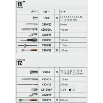 Beta T45 Ratelringsteeksleutelset 12 Delig