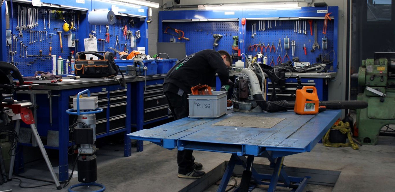 Voor groot onderhoud en reparaties beschikt BJC Tools over een ruime werkplaats waar het noodzakelijke onderhoud aan je machinepark kan worden uitgevoerd.